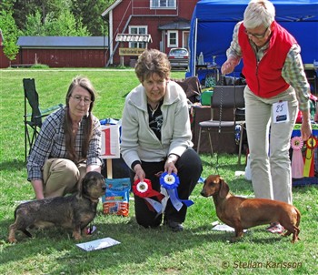 Idag var vi på utställning i Ånnaboda, domare var Marita Krantz och det var 49 Strävhår. Våra hundar Campilios Ull fick nöja sig med en 1:a Jaktklass och Campilios Seger blev BIS 1. På bilden också 2:an korthåret Stubbkärrs Naima.